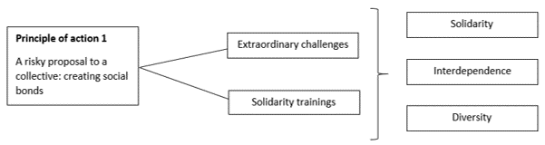 This risky proposal included solidarity trainings and the realization of non-standard challenges in which the eductrainers bet on (a) solidarity, (b) interdependence, and (c) diversity.