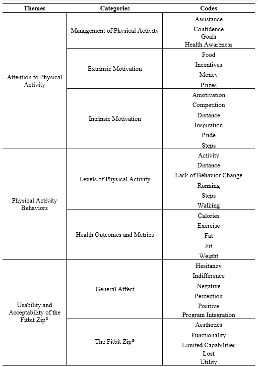 Table 2. Categories, Themes, and Codes identified from Youth Wearing Fitbit Zips®