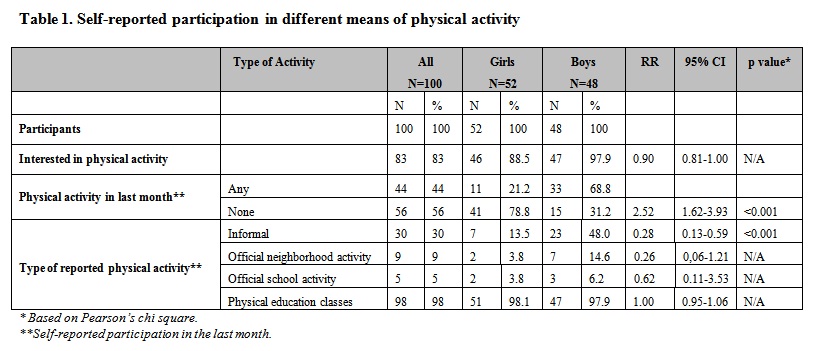 Self-reported participation in different means of physical activity