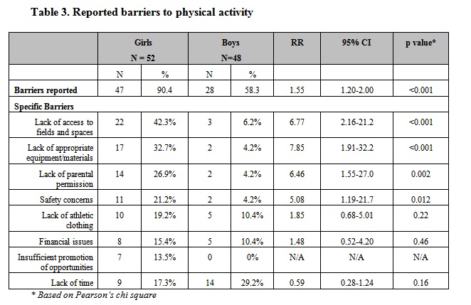 Reported barriers to physical activity